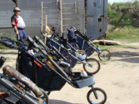 Now this picture shows what normal shooters haul all their equipment around with. No, they are not baby buggies. They are modified baby buggies to carry all your gear. As I was packing all my stuff up Saturday and Sunday morning, it felt like when I first took my newborn son out to do some errands. It is probable that it might be easier to get a baby along with bottles, diapers, binkies, extra clothes, towels, wipes, socks, shoes, toys, books and buggy in the car than all the gear you need for a shooting match. This was just shotgun, can't wait to pack for a three gun.